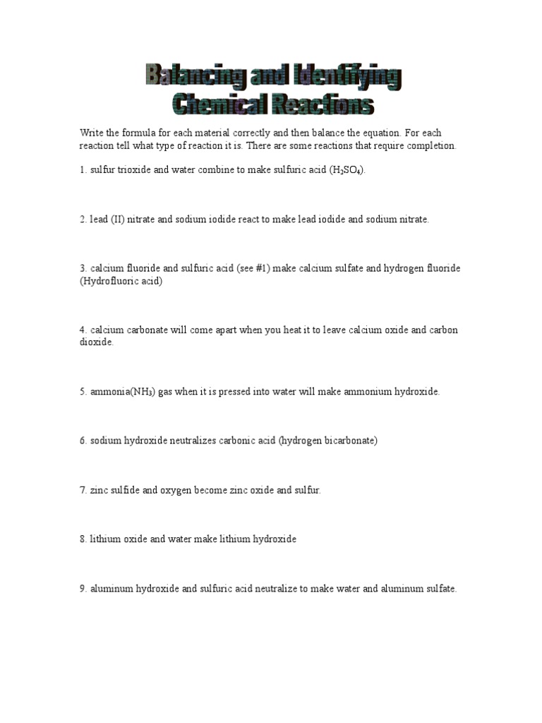 › Get more: Education. Unit 6 Worksheet 3 Ionic Compounds Answers - Booklection.com. Details: Chemistry 11 Unit 6 Chemical Reactions WS6-2 Word Equations.doc 3 Answers to Worksheet 6.1 Writing and Balancing Equations 1. Write the chemical equations and balance each of the following...