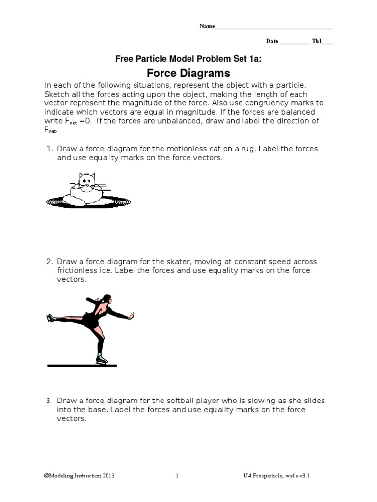 Free particle model worksheet 1a force diagrams.