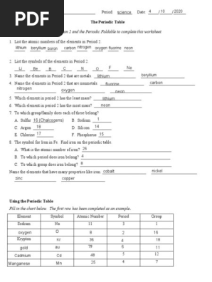 The periodic table worksheet