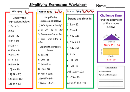Simplifying Like Terms. Subject: Mathematics. Age range: 11-14. Resource type: Worksheet/Activity. A worksheet with 3 activities about simplifying like terms, and an explanation of how do them. Tes classic free licence.