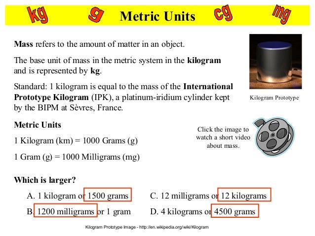 Metric Mania Answer Keys Conversion Practice NOTE: See overhead copy for the stairstep boxes. 1000 mg = 1 g 160 cm = 1600 mm 109 g = 0.109 kg 1 l = 1000 ml 14 km = 14000 m 250 m = .250 km 56 cm < 6 m 7 g > 698 mg Conversion Challenge 1. kg 2. m 3. g 4. ml 5. mm 6. l 7. km 8. cm 9. mg 1. 2 g 2. 104000 m 3. 4.8 m 4. 5600 g 5. .8 cm 6. 5000 ml 7 ...