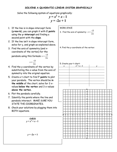 Linear quadratic systems worksheet. No information is available for this page.Learn why10 pages Graphing Linear Equation: Type 1. Substitute the values of x in the given equation to find the y- coordinates. Plot the x and y coordinates on the grid and complete the graph. Each worksheet has nine problems graphing linear equation. Linear Quadratic Systems (line-parabola) ... Solve and check this system algebraically: ... Which ordered pair is a solution to the system of equations: A.G.9: Quadratic-Linear Systems 1:Solve systems of linear and quadratic equations graphically. 1 Which graph could be used to find the solution of.8 pages