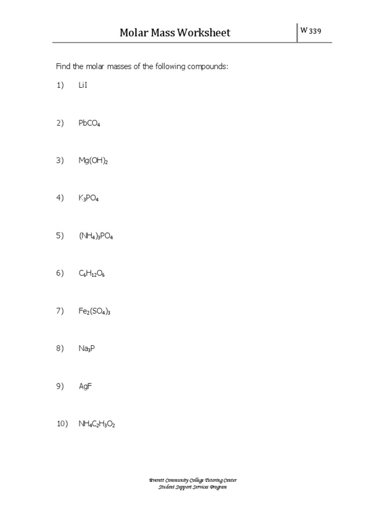 The molar mass worksheet is designed for students to practice calculating the molar mass of various chemicals. How many grams are in 63 moles of ammonium chloride. Find the formula mass of the following compounds. Molar mass practice answer key molar mass worksheet stem sheets. Mole practice worksheet 5 molar volume of a gas molar.