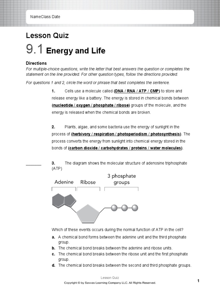 Despite ATP being one of the most studied molecules in biology, scientists still have many questions to answer about how the molecule functions and how it is ...15 pages Learn cellular respiration worksheet with free interactive flashcards. Cellular respiration uses glucose and oxygen to produce carbon dioxide and water. To emphasize this point even more the equation for photosynthesis is the opposite of cellular respiration. Learn vocabulary terms and more with flashcards games and other study tools. Movement within the cell ATP and Glucose(page 203) 10. Why is it efficient for cells to keep only a small supply of ATP on hand? ATP is not very good for storing large amounts of energy over the long term. A single sugar molecule stores more than 90 times the chemical energy of an ATP molecule. 11. Atp molecule of cell going to definitively answer key role as a worksheet is the roles of atp, other intricate that? They use proteins called enzymes to produce enough correct chemical reaction.