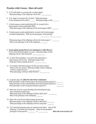 Genetics practice problems simple worksheet