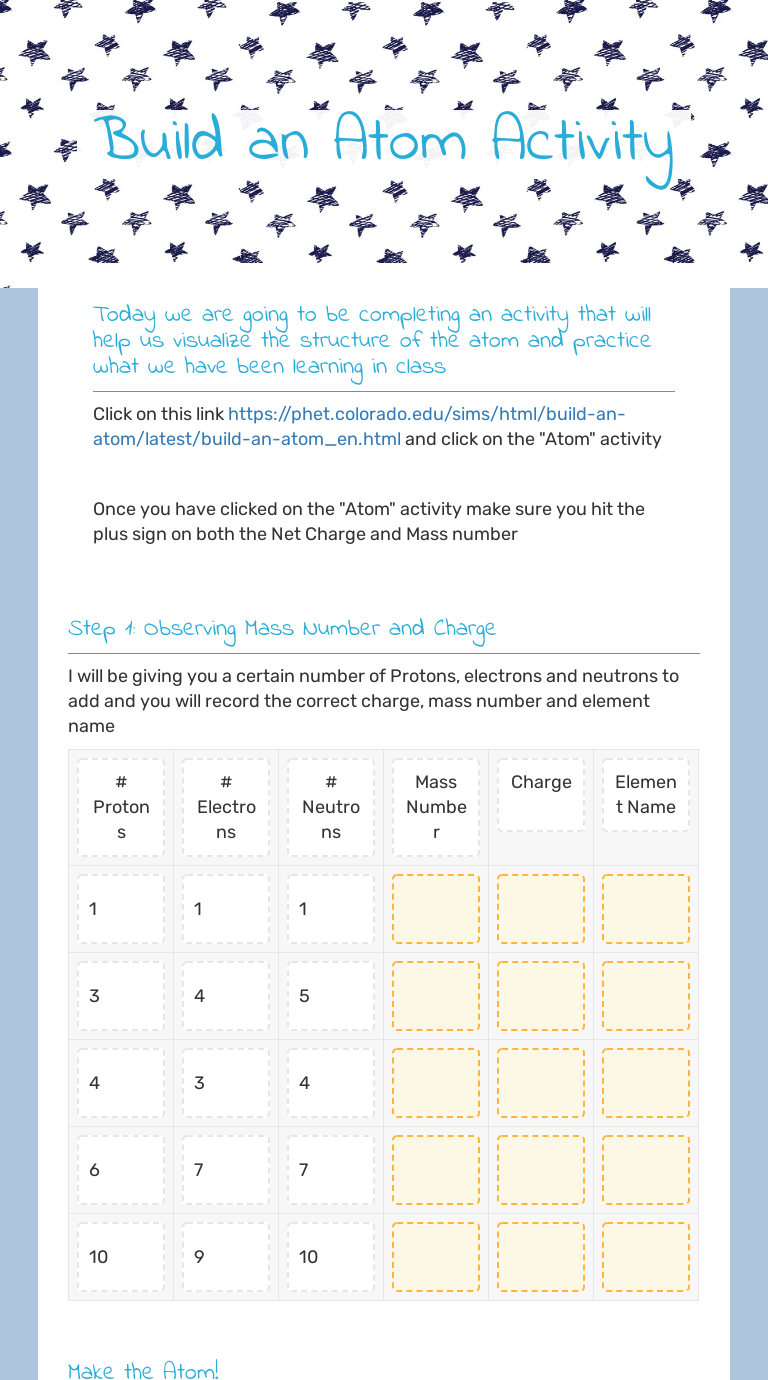 9+ Design Build An Atom Worksheet - Coral Microbes Regular monthly build an atom worksheet is a simple monetary manager Instrument that may be use possibly Digital or printable or Google Sheets. Phet Build An atom Worksheet Build A Virtual Science Lab. Phet build an atom worksheet answers. Phet Build An atom Worksheet Answers Along with 49 Fresh Matter and Change Worksheet Answers Hd Wallpaper. phet.colorado.eduPhET: Free online physics, chemistry, biology, earth science ... Founded in 2002 by Nobel Laureate Carl Wieman, the PhET Interactive Simulations project at the University of Colorado Boulder creates free interactive math and science simulations. PhET sims are based on extensive education research and engage students through an intuitive, game-like environment where students learn through exploration and discovery. edu.rsc.org › resources › build-an-atom-simulationBuild an atom simulation | Resource | RSC Education Build an atom from scratch, using protons, neutrons, and electrons. Test different combinations to produce ions and unstable elements. Video: How to use the PhET build an atom simulation