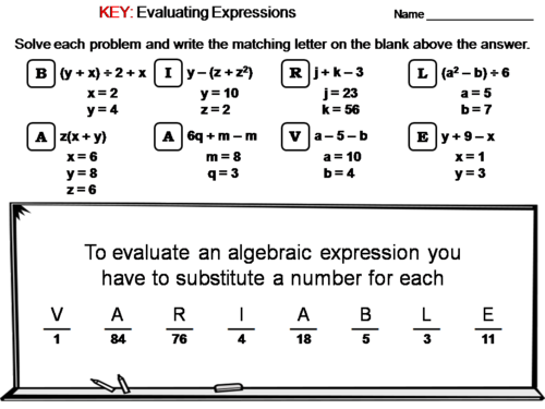 Evaluate the Expression Worksheet Worksheets Evaluate the Expression Worksheet. ( ) Here are algebra worksheets for your grade 7 and 8 students. Answer sheet included.