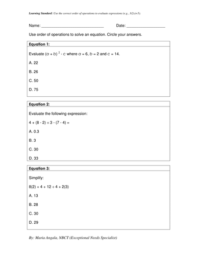 Evaluate Expressions Worksheet Some of the worksheets displayed are Evaluating expressions date period, Evaluating variable expressions, Evaluate the expressions multi variables es1, Evaluating expressions a, Evaluate each expression if d 2 e 3 f 6 and g 12, Evaluate expressions work... Algebraic Expressions Worksheets - Math Worksheet PDF Algebraic expressions worksheets teaches formation of expressions and translation of phrases.Download these Free Algebraic expressions worksheets to learn the concepts. Translating phrases worksheets and forming algebraic expressions worksheets here are free to download. Evaluate Expressions worksheet Expressions online worksheet for Grade 4. You can do the exercises online or download the worksheet as pdf. Evaluate Expressions Evaluate the expression using the assigned value for x. ID: 1249505 Language: English School subject: Math Grade/level: Grade 4 Age: 10-14 Main content... Evaluating Expressions: Post-Test Worksheet | Common-Core Math Evaluating Expressions: Post-Test Worksheet. Related Resources. The various resources listed below are aligned to the same standard, (5OA01) taken from the CCSM (Common Core Standards For Mathematics) as the Expressions and equations Worksheet shown above.