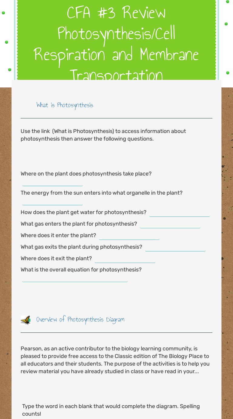 Overview Of Photosynthesis Review Worksheet Answers ... Overview Of Photosynthesis Review Worksheet Answers. Suzanne Delannoy. October 16, 2021. October 16, 2021. 50 Photosynthesis Diagrams Worksheet Answers Chessmuseum Template Library Photosynthesis Graphing Linear Inequalities Word Problem Worksheets. Cellular Respiration Word Game Review Glycolysis Krebs Electron Transport Cellular Respiration ...