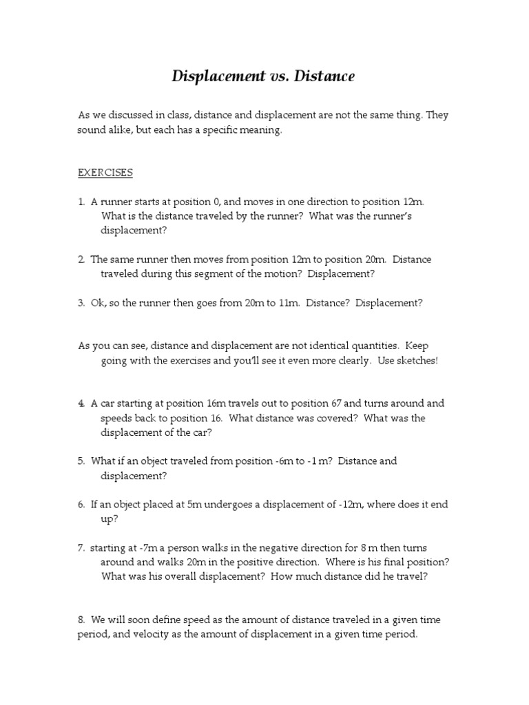 Displacement Versus Distance Worksheets - Learny Kids Displacement Versus Distance Worksheets - total of 8 printable worksheets available for this concept. Some of the worksheets for this concept are Distancedisplacement work, Distance vs displacement ws, Work 3, Describing motion verbally with distance and displacement, Topic 3...