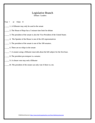 PDF Intermediate Level Legislative Branch Lesson Answer Key 2 Intermediate Level Legislative Branch Lesson Answer Key H . True or False—U.S. Congress. Page 4. Read the sentences below.