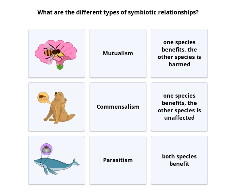 Symbiosis Worksheets - Math Worksheets 4 Kids Symbiosis Key terms. This 6th grade worksheet pdf defines the key terms like host, symbiont, organism, etc. associated with symbiosis in the form of a match-exercise is very useful in comprehending the concept. Symbiotic Relationship Chart. Symbiotic relationships are found throughout the natural world.