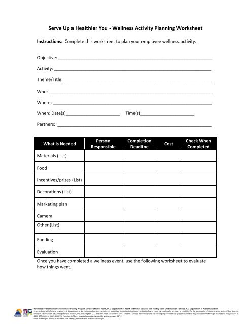 Personal wellness plan worksheet. PDF My Wellness Plan - Montgomery County, Ohio My Wellness Plan Please choose three areas below that you feel the need to focus on. Then establish goals you wish to accomplish over the next three months. There are questions below each heading to assist you in determining the areas that may need attention. Remember, goals should be S.M.A.R.T goals: Specific, Measureable, Attainable, Relevant ... PDF School Wellness Plan Checklist - APS Worksheet A SCHOOL WELLNESS PROGRAM IMPLEMENTATION CHECKLIST Albuquerque Public Schools H&W/DMC/Revised16Aug07 Page 1 of 8 Pages 1. Carefully read and discuss the statements with your school health advisory committee . 2. Check the most appropriate box for each activity. 3. Pathways to Wellness Personal Wellness Plan Worksheet Use this Personal Wellness Plan to create a path to wellness that's right for you. Come back to these questions often as the semester goes on to stay on track with your wellness goals. Step 1: Take Inventory. Fill in the chart below to reflect your wellness in each domain right now using the following scale. Write your rating in the boxes below. Personal Health And Wellness Teaching Resources | TpT Personal Health and Wellness Bingo by Jennifer Miller 4 $1.25 $1.00 PDF The Personal Health and Wellness Bingo game is a complete activity with bingo cards, a vocabulary word list, a set of calling cards and a definition and description information sheet. The game packet includes 80 unique bingo cards printed two on a page.