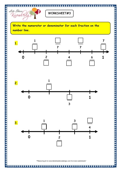 Fractions on a Number Line Worksheets 3rd Grade - Cuemath These 3rd grade math worksheets also build a foundation for the students in terms of comparing and ordering different types of fractions used in the arithmetic operation like addition and subtraction. Students can practice various kinds of questions regarding placing the fractions on a number line using these worksheets.