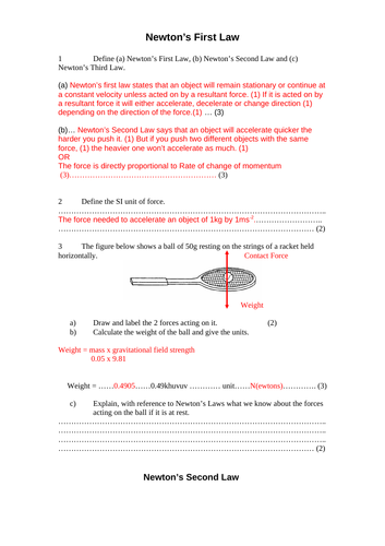Newton's laws worksheet answers