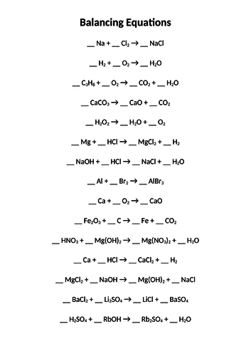 How to Balance Equations - Printable Worksheets Jan 04, 2019 · Balancing an unbalanced equation is mostly a matter of making certain mass and charge are balanced on the reactants and products side of the reaction arrow. This is a collection of printable worksheets to practice balancing equations. The printable worksheets are provided in pdf format with separate answer keys.