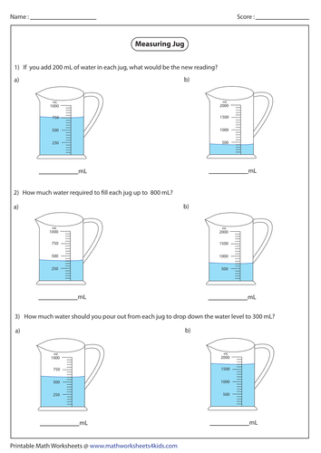 Reading Jug Worksheets Capacity Liquid Volume | Volume math, Capacity worksheets, Volume worksheets
