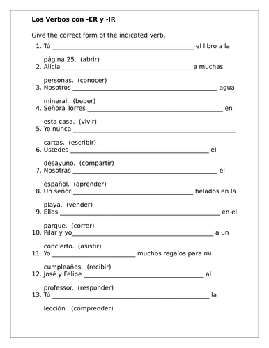 PDF Worksheet Er And Ir Verbs Answers worksheet er and ir verbs answers can be taken as well as picked to act. 01054 Spanish Lesson - Present tense: Regular -IR verbs Explanation of Spanish ER and IR VerbsLEARN To Conjugate AR ER IR...