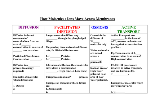 Cell transport review worksheet