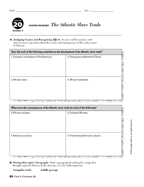 The atlantic slave trade worksheet answers