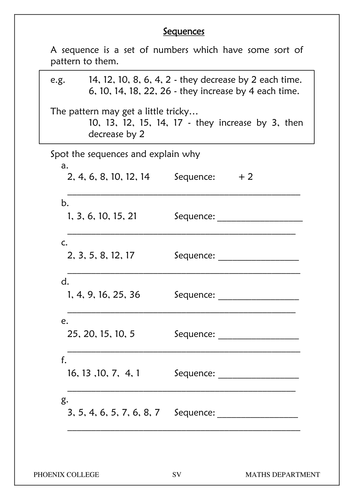 Mathematical Sequences Worksheets Independent Practice 1 A really great activity for allowing students to understand the concept of mathematical sequences. View worksheet Independent Practice 2 Students find the value of mathematical sequences in assorted problems. The answers can be found below. View worksheet Homework Worksheet