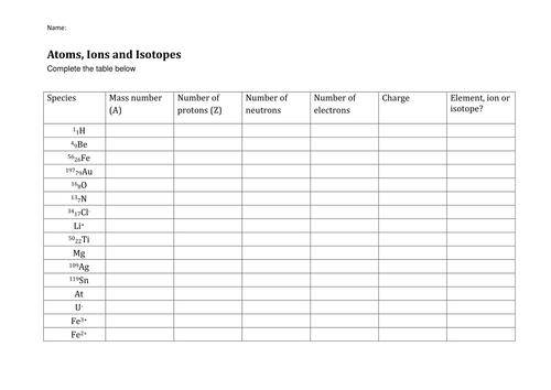 PDF Isotopes/ ions worksheet answers - GEP Carbon-14: 14 is the Mass Number (# Protons + # of Neutrons). _____ 7. The atom does not have the same number of protons (+) and electrons (-), an ion is an atom that is no longer neutral because it has won or lost electrons. Slide 26 ions winning or missing electrons The number of electrons can change. Slide 7 Atomic number and the