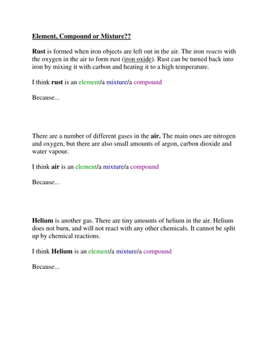 Ejercicios de Mixtures and Solutions online o para imprimir. Live worksheets > inglés > Science > Mixtures and Solutions Ejercicios de Mixtures and Solutions online o para imprimir. Idioma: inglés Asignatura: Science ... Temperature - Mixtures - Solutions Curso/nivel: 3rd grade por PaoMG: Unit 6 Study Guide page 3 Curso/nivel: 8 por palmergm: Solution Curso/nivel: 6 por hh5364: Mixtures Mind map Curso ... PDF Mixtures and Solutions Sorting Activity - MRS. KEES you learn about mixtures and solutions. I have provided a color and black and white copy of the pictures. Print them however you prefer. If you have any questions about my product please feel free to contact me at tvern08@gmail.com If you enjoyed this activity, please visit my TPT store and preview my selection of math and science products. Mixtures And Solutions Question And Answers Worksheets & Teaching ... With this resource, students will learn about mixtures and solutions through reading engaging passages on differentiated reading levels. Students can respond to multiple-choice or short-answer questions after reading. Teaching notes and lesson plans are included. This resource can be printed or shar Subjects: Mixtures & Solutions: Quiz & Worksheet for Kids | Study.com Worksheet 1. What is an example of a mixture? Trail mix Chocolate pudding The ocean Cupcakes 2. Sugar water is a mixture of sugar and water, which ingredient is the solvent? Water Sugar Sugar and...