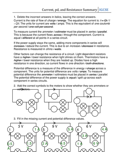 Voltage, Current and Resistance - Liveworksheets Voltage, Current and Resistance This worksheet provides a YouTube lesson explaining electricity and its variables; Voltage, Current and Resistance, how they can be measured as well as their relationships according to ohm's law. ID: 2435958 Language: English School subject: Science Grade/level: 6 and above Age: 11+ Main content: Electricity voltage current resistance worksheet voltage current worksheet parallel series resistance. A Level Physics (13.2) More About Resistance (Direct Current Circuits . resistance physics circuits direct current level. 36 Current Voltage And Resistance Worksheet - Worksheet Source 2021 dontyou79534.blogspot.com. resistance. Current & Voltage In Series & Parallel Circuits By ...