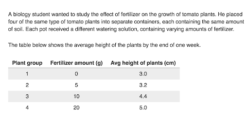DOCX 04_Exercise 2 - Experimental Design.docx Experimental Design Practice, © Modeling Instruction - AMTA1Unit 1 - Experimental Design, Dieffenbachia plants usually grow well without fertilizer. A student wanted to see if adding liquid fertilizer would make a difference in the growth of the plant. Three plants were placed in the same type of pot with the same type of soil.