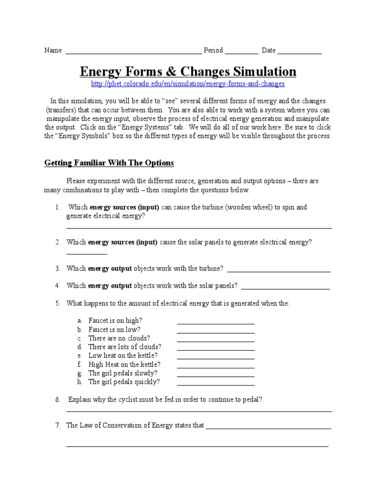 Forms of energy worksheet answers