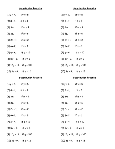 Algebra 1 substitution worksheet