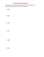 Oxidation Numbers Worksheet Teaching Resources | TpT REDOX: Assigning Oxidation Numbers Practice Worksheet Students will be applying the assigning oxidation numbers rules they learned in class to a practice worksheet. The worksheet contains 20 examples that cover all of the oxidation number rules discussed in class. This practice worksheet can be done in class or as homework.