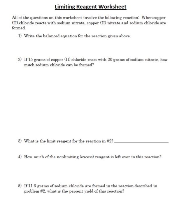 Solved Limiting Reagent Worksheet All of the questions on ...