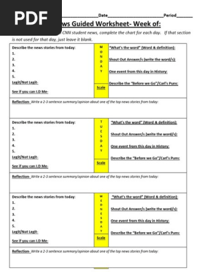PDF CNN Student News Guided Worksheet - Weebly CNN Student News Guided Worksheet Instructions- As we watch CNN student news each day, complete the chart. If the section is not discussed that day, leave it blank. Remember to rate yourself on the scale and write that number in the corresponding box. Week of (write the first day of the week's date): CNN Student News Scale