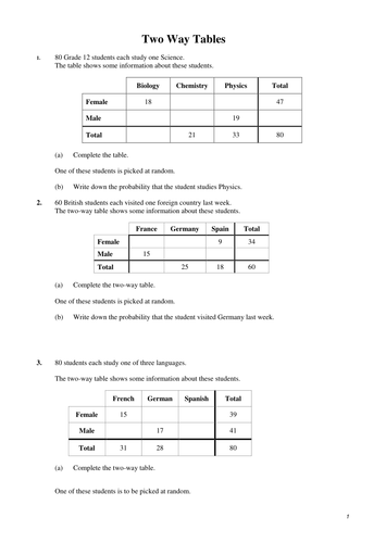 Two way tables worksheet answers. corbettmathsprimary.comCorbettmaths Primary – Primary 5-a-day, videos, worksheets ... Primary 5-a-day, videos, worksheets and more › converting-decimals-toConverting Decimals to Fractions Worksheet - Math Salamanders Converting a decimal into a fraction is a fairly straightforward process. It involves looking at the number of decimal places the decimal has and putting the decimal part as the numerator and the denominator as a '1' followed the the same number of zeros as there are decimal places. 6th Grade Math Practice Topics, Test, Problems with Answers, … 6.5.2022 · Go Math Grade 6 Answer Key Big Ideas Math Grade 6 Answer Key Eureka Math Grade 6 Answer Key In Grade 6 a lot of topics are covered from Grade 5 but with more depth. Tables with times tables games This will help you learn all of your tables. The speed test is good practice for getting your tables diploma. On the tables diploma the questions are a bit quicker than on the speed test, but if you get all of them right you will get your tables diploma. There are two tables diplomas. The little diploma is made up of 30 questions.