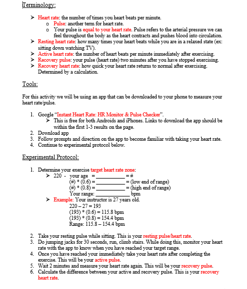 Target Heart Rate Worksheet - Target Heart Rate Worksheet ... - StuDocu Target Heart Rate Worksheet. Name: _____ Section Number: _____ Your heart is the most important muscle in your body. It is the pump that delivers oxygen rich blood throughout your body. Like all muscles it will become stronger with use. As it strengthens, it will become a more powerful pump that pushes more blood with each beat.