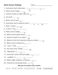 Metric system challenge worksheet
