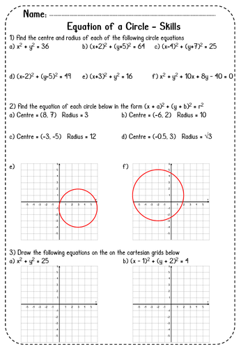Circle Equations Worksheets | Teaching Resources Circle Equations Worksheets. Subject: Mathematics. Age range: 16+ Resource type: Worksheet/Activity. 4.6 8 reviews. One Maths Questions. 4.431111111111111 190 reviews. Last updated. 22 February 2018. Share this. Share through email; Share through twitter; Share through linkedin; Share through facebook;