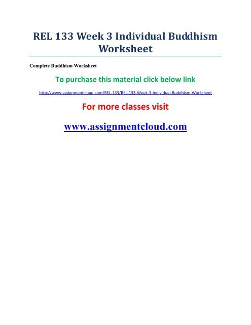 REL 133 Week 3 Assignment Buddhism Worksheet and Paper ...