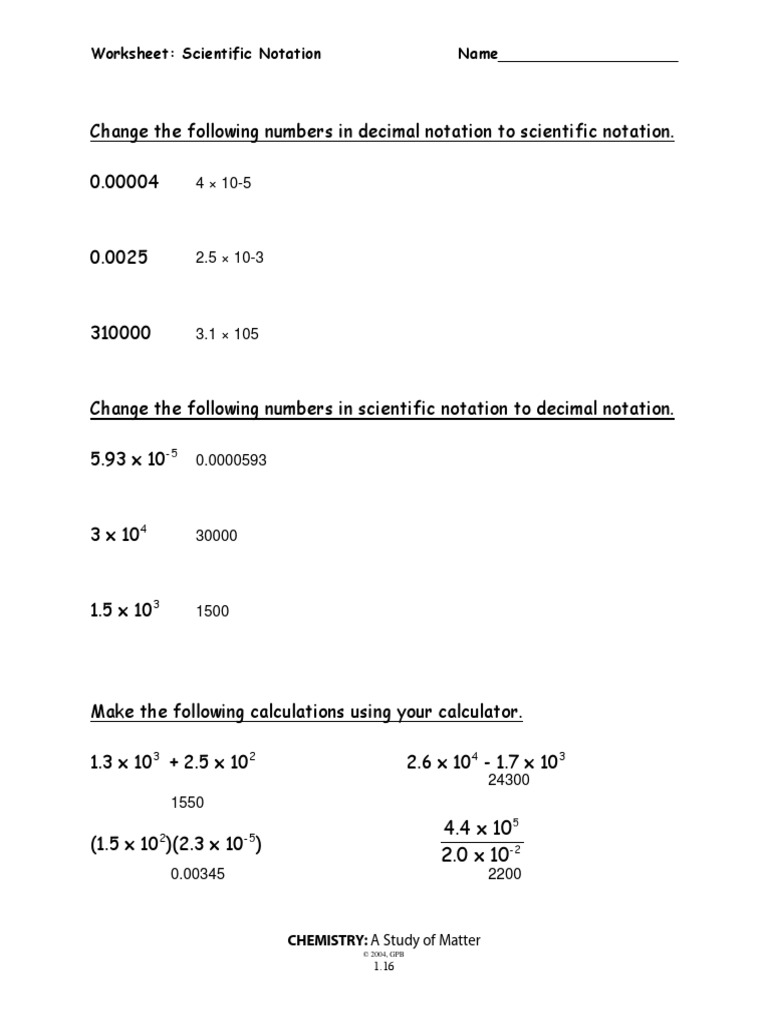 Chemistry scientific notation worksheet answers