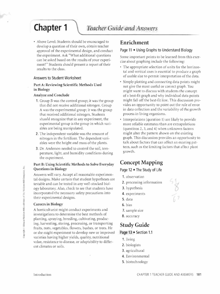Chapter 1 biology the study of life worksheet answers. Biology Chapter 1: The Study of Life Flashcards | Quizlet the process of change that occurs during an organism's life to produce a more complex organism growth increase in the amount of living material and formation of new structures in an organism; a characteristic of all living things reproduction the process of producing offspring response a reaction to a stimulus species PDF Biology Chapter 1: The Study of Life - Mrs Macquarrie's Science Class Biology Chapter 1: The Study of Life . Homework Guide . Section 1.1 Introduction to Biology . Vocabulary: ... If you complete the reviews sheet as if it were a worksheet ... Use complete sentences. You must answer all of the parts of multipart questions. Partial credit will not be given. Cheat Sheet: You can use both sides of a 3 x 5 Card as a ... Chapter 1. The Study of Life – Introduction to Molecular and ... by K Mattaini · 2020 — Summarize the steps of the scientific method. What is biology? In simple terms, biology is the study of living organisms and their interactions with one another ... Class Answer the following questions. 1. What is the primary focus of all biological studies? Understanding living things and how they interact.