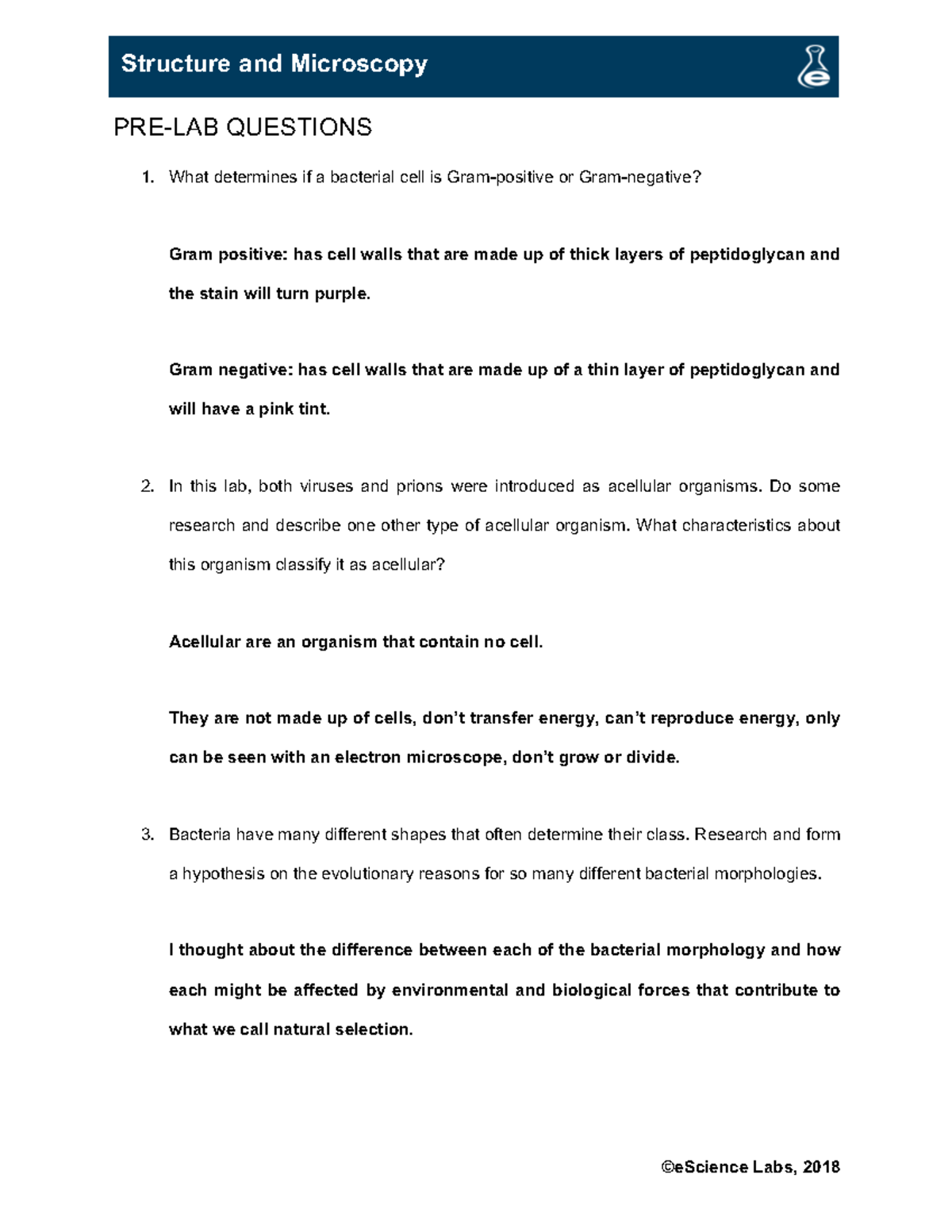 Characteristics of bacteria worksheet answer key