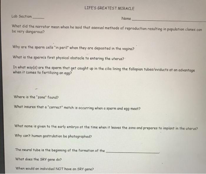 Life greatest miracle worksheet answers