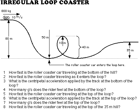 Roller Coaster Physics Worksheet | Teachers Pay Teachers Browse roller coaster physics worksheet resources on Teachers Pay Teachers, a marketplace trusted by millions of teachers for original educational resources. ... Boost student engagement and tie in literacy and STEM concepts using these 4 Reading & Writing Activities for Roller Coaster Physics: Thrill Ride Review, Ride Accident Research, Roller ... Worksheet: Roller Coaster Simulation - AAPT Worksheet: Roller Coaster Simulation Key Topic/Concept: Mechanical Energy and Conservation of Energy in a Roller Coaster Note: See related lesson on pendulum motion for an example of another common system that displays the conversion of potential to kinetic energy. Revisit this lesson with friction in the introduction to the thermal energy lesson. Roller Coaster Physics - Real World Physics Problems Let W be the gravitational potential energy at the top of the hill. Then, where m is the mass of the roller coaster, and g is the acceleration due to gravity, which equals 9.8 m/s 2 on earth's surface. The kinetic energy of the roller coaster is: where v is the speed of the roller coaster. If we assume no friction losses, then energy is conserved.