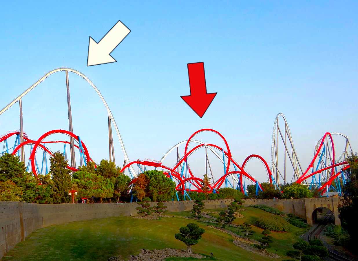 PDF Teacher Toolkit - Physics Classroom Physics of Roller Coasters Objectives: 1. To use energy principles and energy bar charts to explain the changes in speed of a car that traverses a roller coaster track. 2. To use kinetic and potential energy equations to predict the speed of a roller coaster car at a particular height on the track if given the initial height of the first drop. 3.