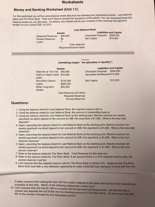 Bank on it worksheet answers