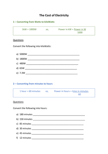 Cost of electricity worksheet - GCSE Physics - TES Cost of electricity worksheet - GCSE Physics. Subject: Physics. Age range: 14-16. Resource type: Worksheet/Activity (no rating) 0 reviews. The Science Tutor. 3.3333333333333335 4 reviews. A collection of Biology, Physics and Chemistry resources for Key Stage 3 and Key Stage 4. I work as a mainstream Science teacher and all of these lessons have ...
