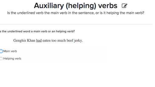 Action, linking, and helping verbs (practice) | Khan Academy Is the underlined verb the main verb in the sentence, or is it helping the main verb? If you're seeing this message, it means we're having trouble loading external resources on our website. ... Middle school Earth and space science - NGSS. NEW; Middle school physics - NGSS. NEW; High school biology; High school biology - NGSS; High school physics;