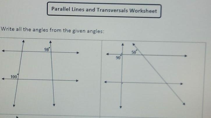 parallel lines and transversals worksheets - TeachersPayTeachers Parallel Lines Transversals and Angles Worksheet by Mr Slope Guy 4.9 (35) $2.50 PDF Activity Hello Math Teachers! This worksheet is on finding measurement of angles of parallel lines using corresponding angles, alternate interior, alternate exterior, vertical and the sum of interior angles of a triangle.