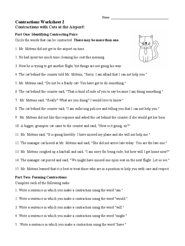 Contractions Worksheets - Math Worksheets 4 Kids Our bouquet of pdf contractions worksheets has the variety, color and bloom to make the learning experience all the more pleasant. This arrangement includes appealing worksheets like 'Chirping contractions', 'Scoop out the expansions', 'Magic with contractions', Soaring contractions' and many more themed worksheets. Second Grade Contractions Worksheets - K12 Workbook Displaying all worksheets related to - Second Grade Contractions. Worksheets are Contractions grade 2 work, Contractions, Contractions, Grade 2 apostrophes contractions a, Work on contractions for second grade, Contractions, Contractions, Grammar virtual learning 2nd grade apostrophes with. *Click on Open button to open and print to worksheet. 1. 2nd Grade Contractions Worksheets - K12 Workbook Displaying all worksheets related to - 2nd Grade Contractions. Worksheets are Contractions, Contractions, Contractions grade 2, Contractions with not, Contractions work 5, Contractions work contractions, Contractions, Contractions. *Click on Open button to open and print to worksheet. Contractions | 2nd grade Writing Worksheet | GreatSchools - Parenting Don't write it the long way, use contractions. In this language arts worksheet, your child gets practice identifying and writing contractions. ... WRITING | GRADE: 2nd . Print full size. Print full size. Skills Contractions, English grammar. Common Core Standards: Grade 2 Language. CCSS.ELA-Literacy.L.2.2.